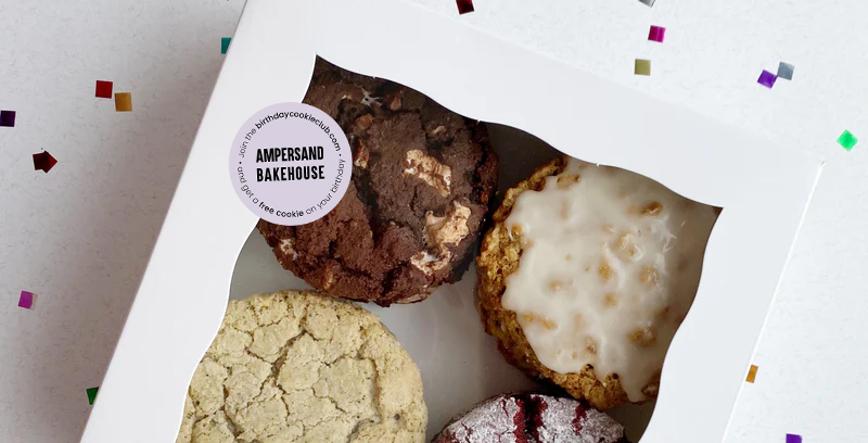 To capture emails (and more importantly birthdays) from physical sales, I designed a sticker that said: “Join the birthdaycookieclub.com and get a free cookie on your birthday.” That sticker went on every cookie bag and box at the market. The domain name (a simple redirect) was intentional. I learned early on that not all customers knew what an ‘ampersand’ was and would often swap ‘bakehouse’ for ‘bakery.’ So I chose the simplest possible URL: common words, easy to spell, memorable.